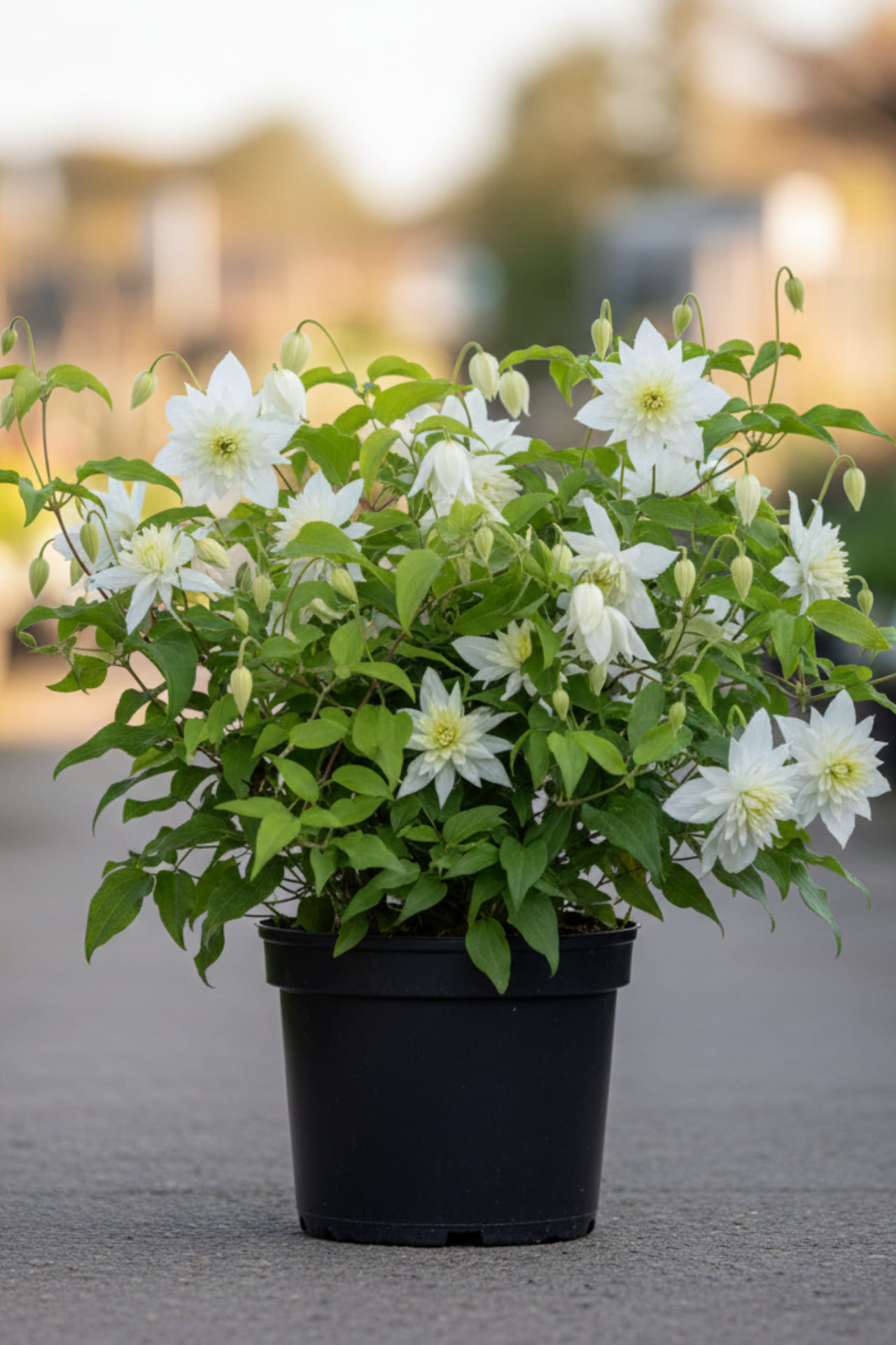 - белые, махровые со светло-жёлтыми тычинками, открытые колокольчиковидные, диам. 6-8 см, слегка свешивающиеся.