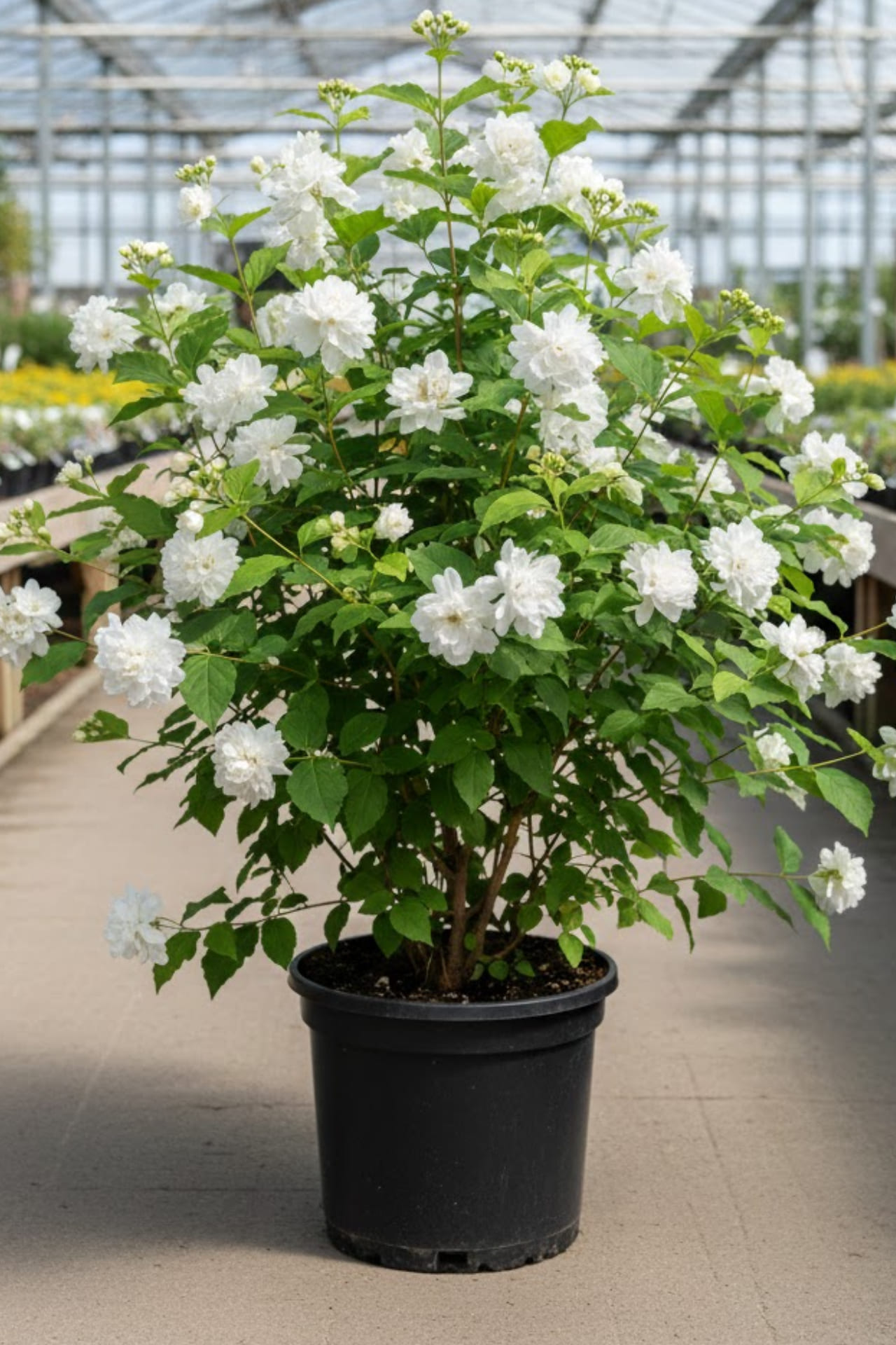 Цветение: Белые, снаружи слабо-розовые, сильно махровые, отдельные цветки диаметром 1,5 - 2 см., собраны в соцветия длиной 12 см., в июне-июле в большом количестве.