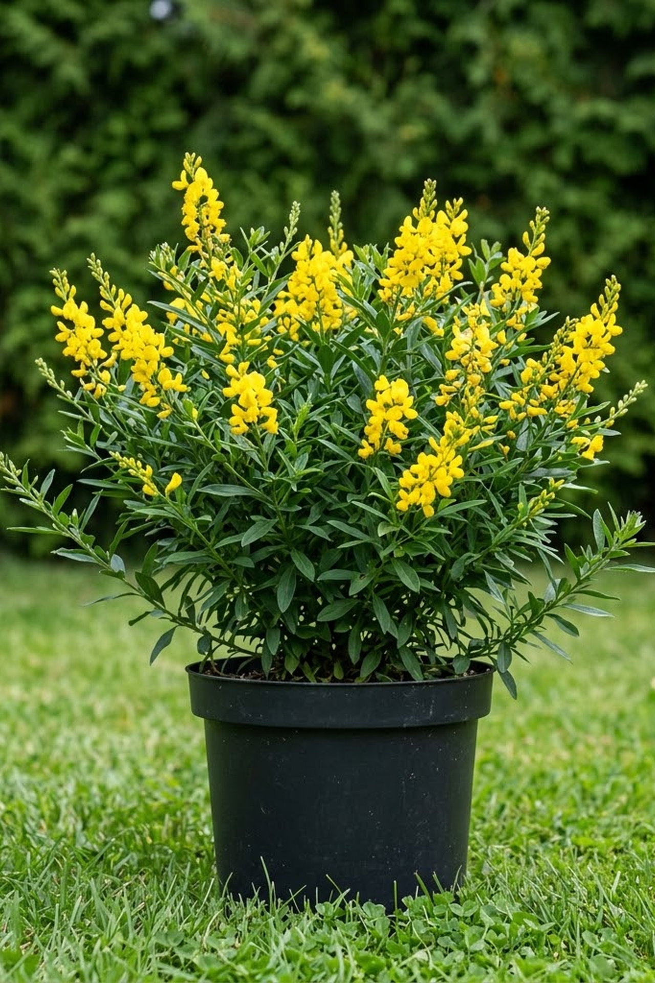 - золотисто-желтые цветки, собранные в длинные кистевидные соцветия. Плоды золотисто-желтые, собранные в кисти узкие бобы
