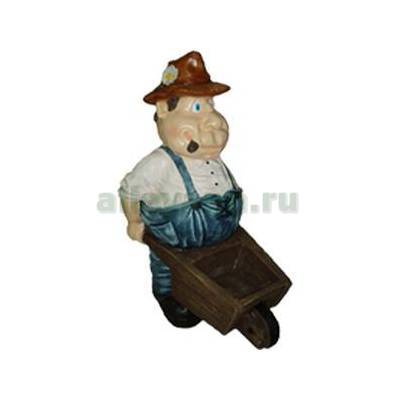 Фигура садовая ДАЧНИК В ШЛЯПЕ С ТАЧКОЙ в Перми