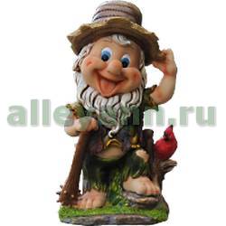 Фигура садовая ГНОМИК В ШЛЯПКЕ С ПОПУГАЕМ в Перми