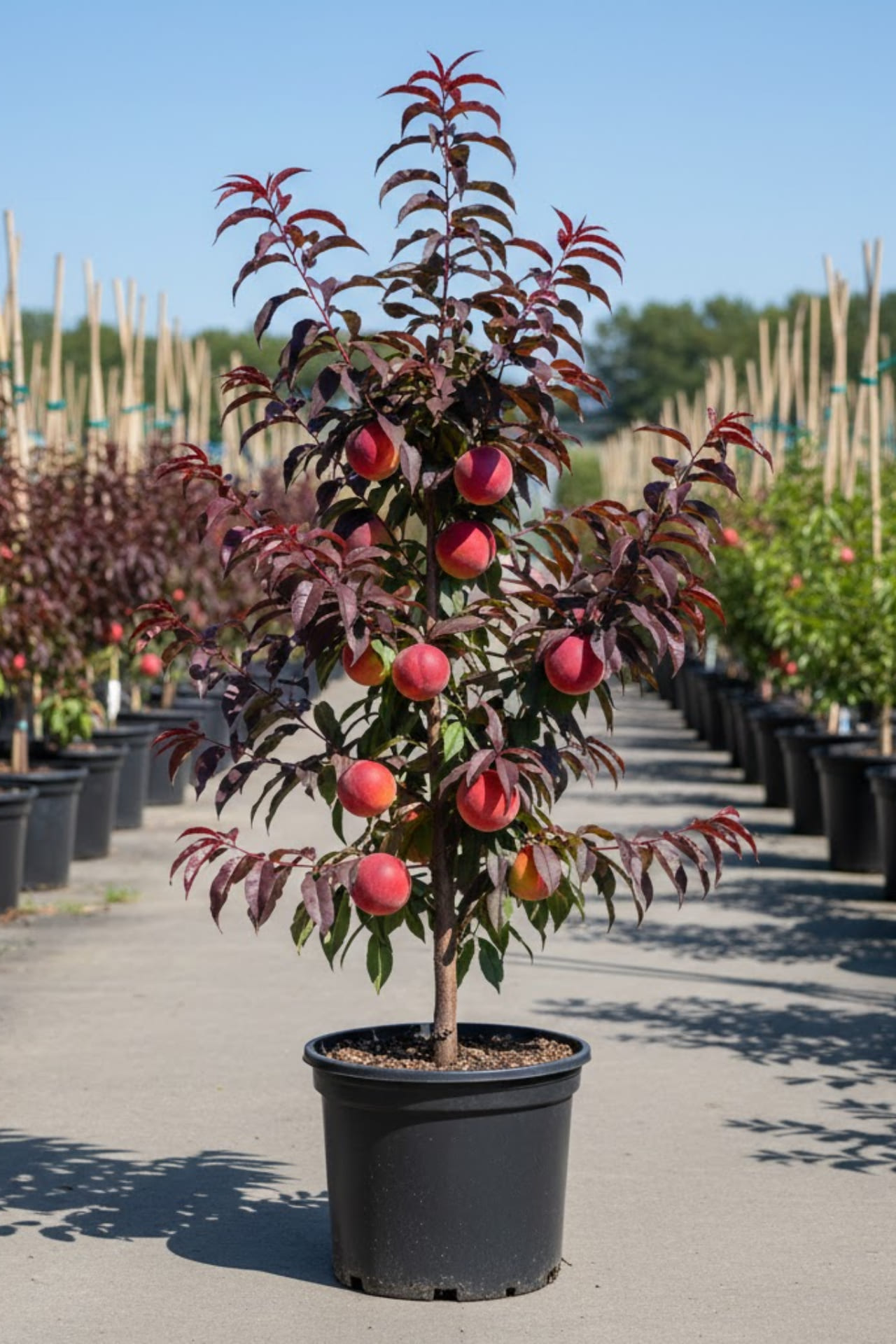 Персик Кримсон Бонфайр колоновидный карлик, крастнолистный - саженцы из питомника в Перми