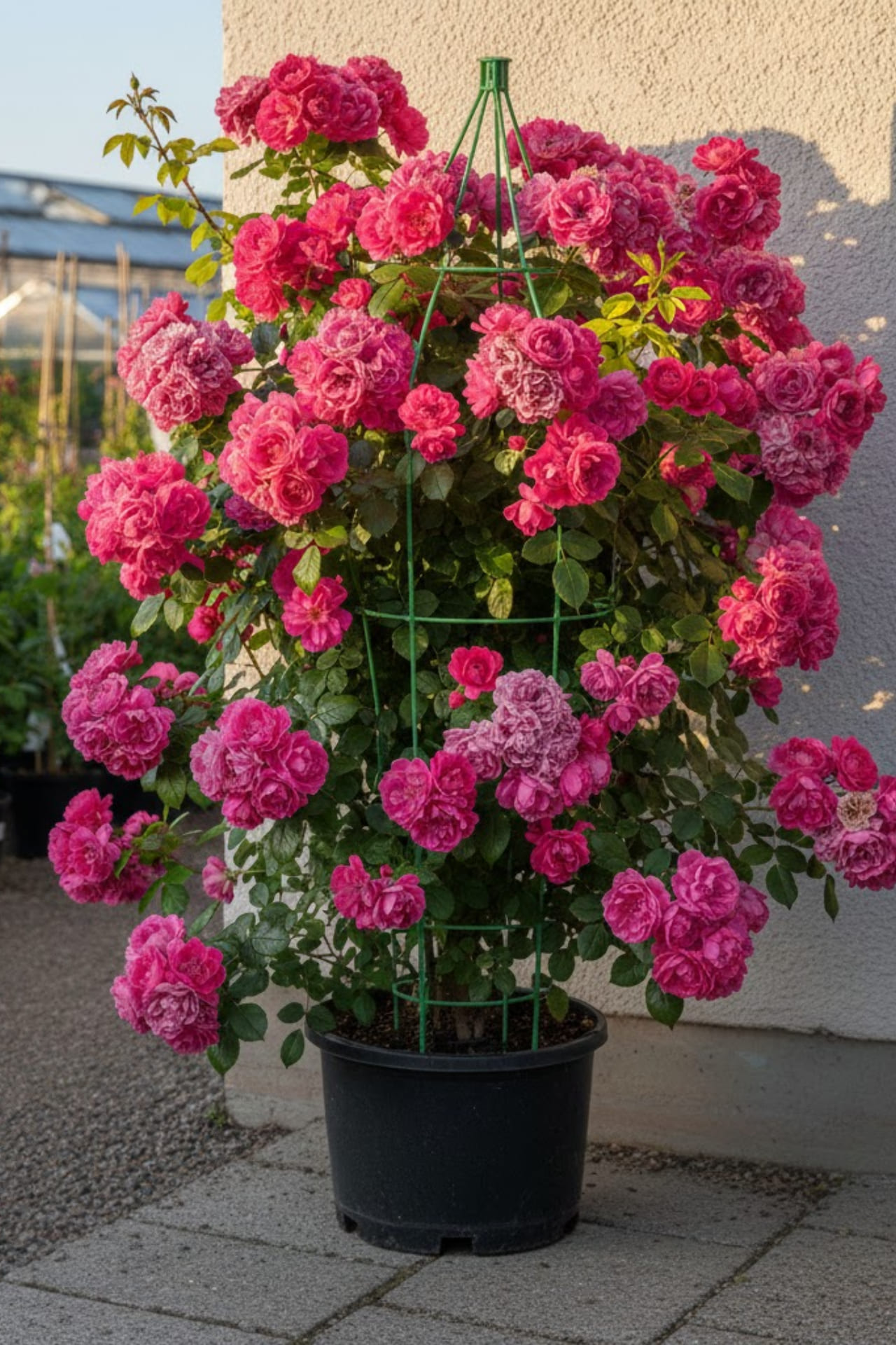 - Размер цветка 8-9 см. Цветки темно-розовые, густомахровые, с чудесным ароматом, появляются в крупных кистях по 5-15 шт